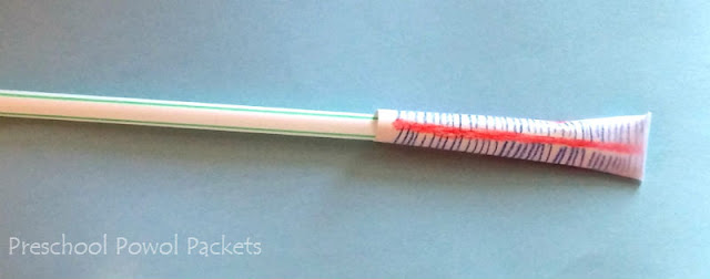 Roll the paper around a straw and tape it in place. Make sure it is loose enough to move up and down the straw easily.