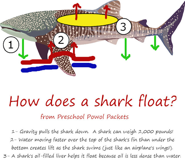 3- Sharks' oily liver is the third key in how sharks float! Oil will float on water because it is less dense. HERE is a super fun experiment demonstrating this! You can also check out this fish experiment and this penguin experiment for more fun with density, oil, and water!